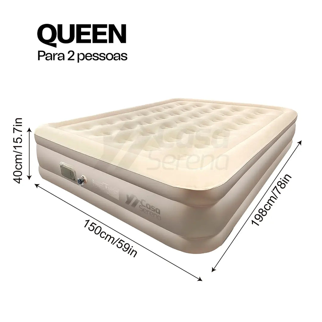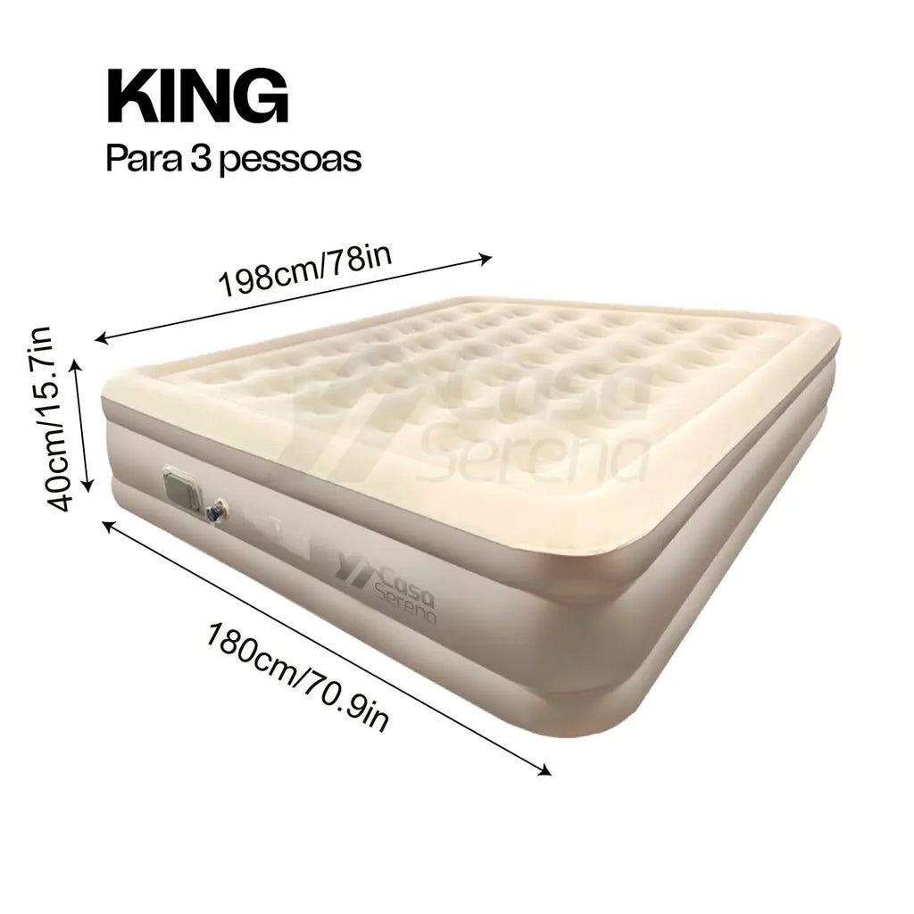 Acompanha bomba elétrica que enche e seca em até 3 minutos.