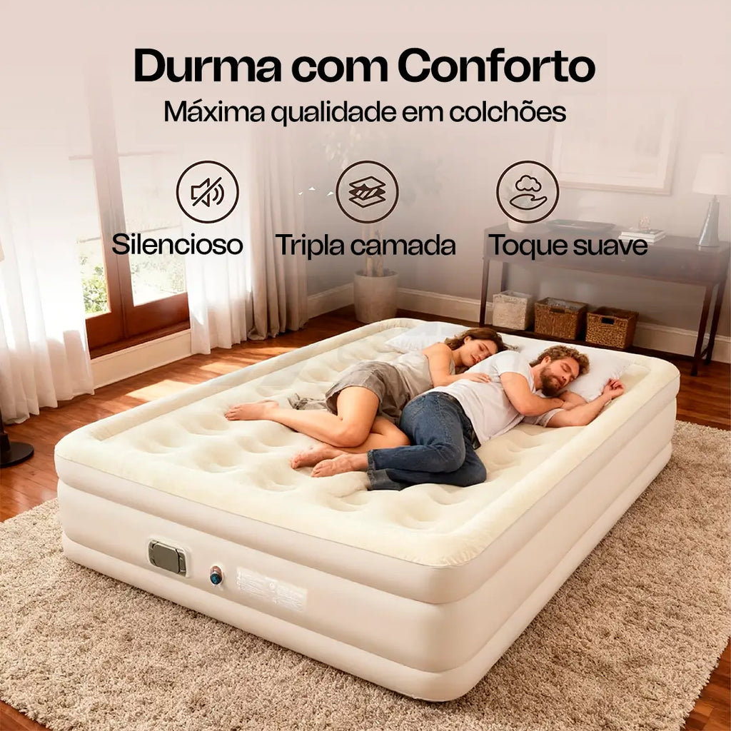BÔNUS PERFEITO: BOMBA ELÉTRICA + 2 TRAVESSEIROS INFLÁVEIS